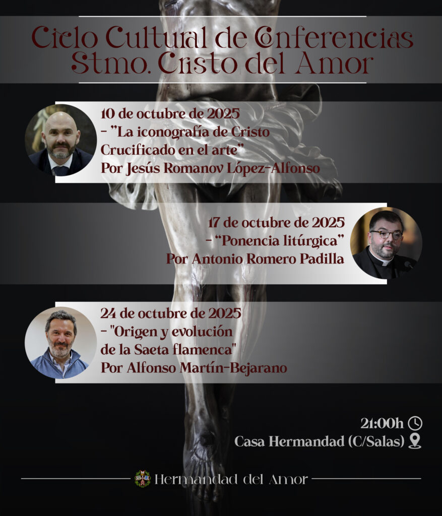 Una vez más la Hdad. del Amor realiza su Ciclo Cultural del Cristo del Amor, donde contarán con conferencias que abordan temas religiosos, históricos y culturales.