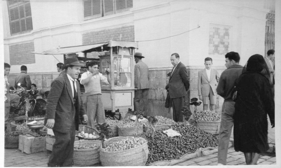 Desde luego parece que la plaza de la verdura se ha trasladado en este día a la calle Larga. En ella se ven grandes montones de castañas y de batatas, gruesas estacas clavadas en el suelo con un esportón en la punta a manera de estandarte, y que sirve a la noche para proteger al candil de tres mecheros. Pesos y romanas pendientes de cordeles sujetos en horquillas, cada uno de los cuales parece la balanza de la justicia que distribuye peros al pobre y al rico mediante la igualdad de su dinero. Chozas de esteras que recuerdan bucólicas costumbres, mesillas cargadas de fruta, fruteras cargadas de trapos, vendedores en mangas de camisa gritando como energúmenos, algún morito, que no habla palabra, con una docena de fajas y babuchas colgadas de la pared, una urnita de cristal llena de dátiles a su lado, y un círculo de chiquillos en muy caprichosas actitudes, mirando estupefactos su mugriento traje y la gravedad de su barbudo semblante: caballos, borricos, gallegos cargados de costales llenos de tosantos y arreados por inocentes párvulos, viejas curiosas que nada compran y todo lo manosean, padres complacientes que adquieren los medios de proporcionar indigestiones a su pequeña prole, criaditas frescas como manzanas y dicharacheras como ellas solas, que compran una libra de batatas al mejor mozo de todos los vendedores para el solterón de su amo que les ha encargado mucho que las regateen, trúhanes que buscan ocasión de encontrar una bolsa que no se ha perdido, rufianes que insultan a todo el mundo, pollos calaveras que miran a las criadas con ojos saltones y dan vueltas a uno y otro lado estorbando en todas partes, municipales tan serios como requiere la gravedad de su carácter, representantes de la ley que son baluartes de desmanes, y una turba de pillos que chilla, corre, grita, y entre las maldiciones de las viejas y los sopapos de los municipales, meten una bulla infernal formando los coros de tan cómica escena.