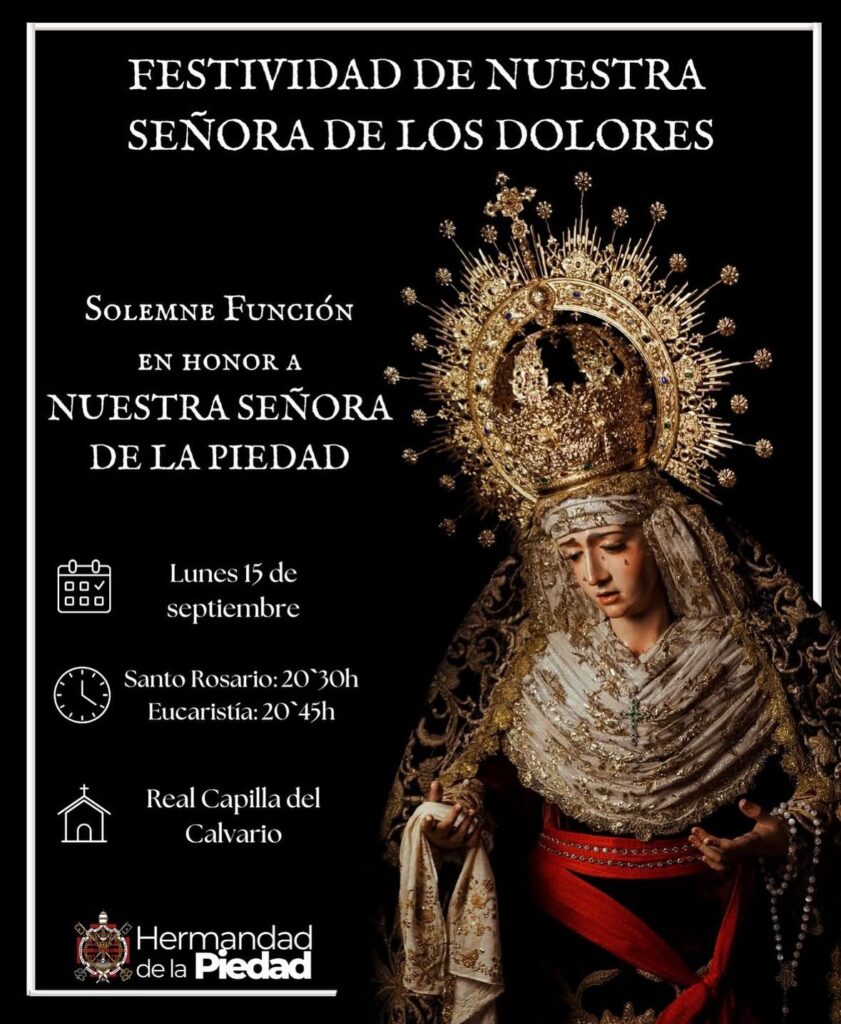 Hoy 15 de septiembre, se celebra la Festividad de los Dolores de Nuestra Señora, la hermandad de la Piedad celebra una Función Solemnte a su titular mariana.